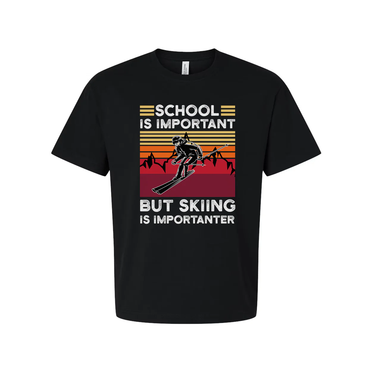 - Humorous slogan: "SCHOOL IS IMPORTANT BUT SKIING IS IMPORTANTER" adds a fun, relatable touch to your look.