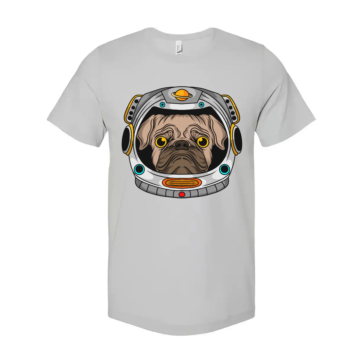 - Bold, eye-catching pug in a space helmet graphic on the chest